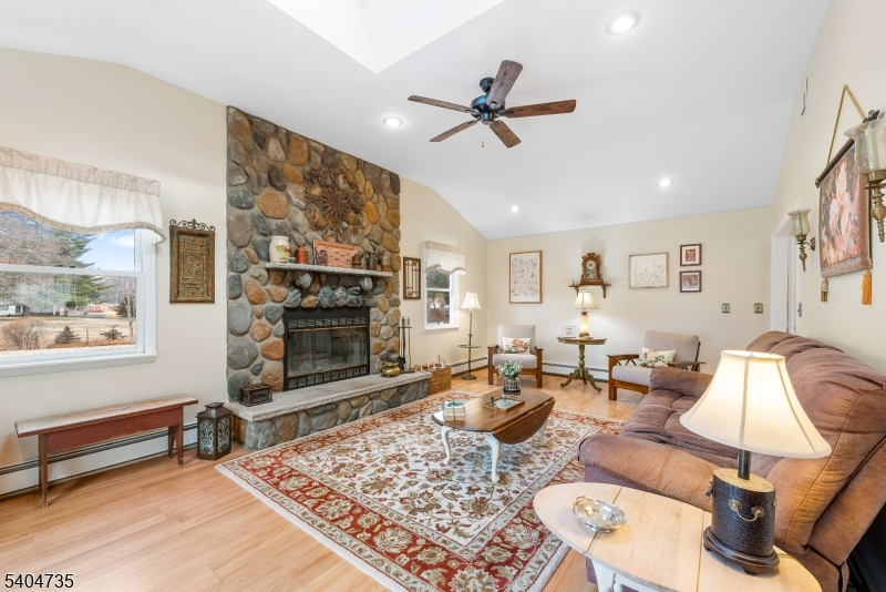 Welcome to this desirable Succasunna expanded ranch, set on a large, level, fully fenced yard perfect for entertaining and everyday enjoyment. Major updates include a roof and deck less than five years old. The spacious deck features an electric retractable awning, offering the perfect spot to stay cool while overlooking the beautiful backyard. Inside, the home offers 3 bedrooms, 2.5 baths, and a finished full basement, providing plenty of living and storage space. The updated kitchen is a true highlight, featuring stainless steel appliances, granite countertops, a center island, and abundant cabinetry perfect for cooking and gathering. Enjoy both a formal dining room and living room with hardwood floors, while the family room boasts a wood-burning fireplace, cathedral ceilings, and recessed lighting. A bonus room off the garage offers flexible space ideal for a den, library, home office, or potential fourth bedroom. The primary bedroom suite includes a full bath and French doors leading directly to the deck. Additional features include public water, natural gas, and a prime location just minutes from major highways, transportation, dining, shopping, lakes, and a large park. Conveniently located approximately one hour from NYC. Don't miss this incredible opportunity!