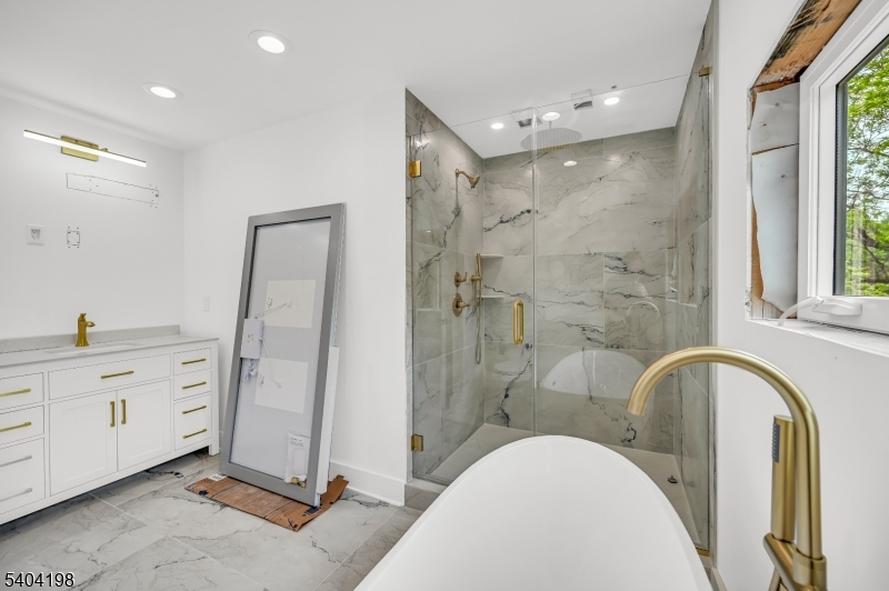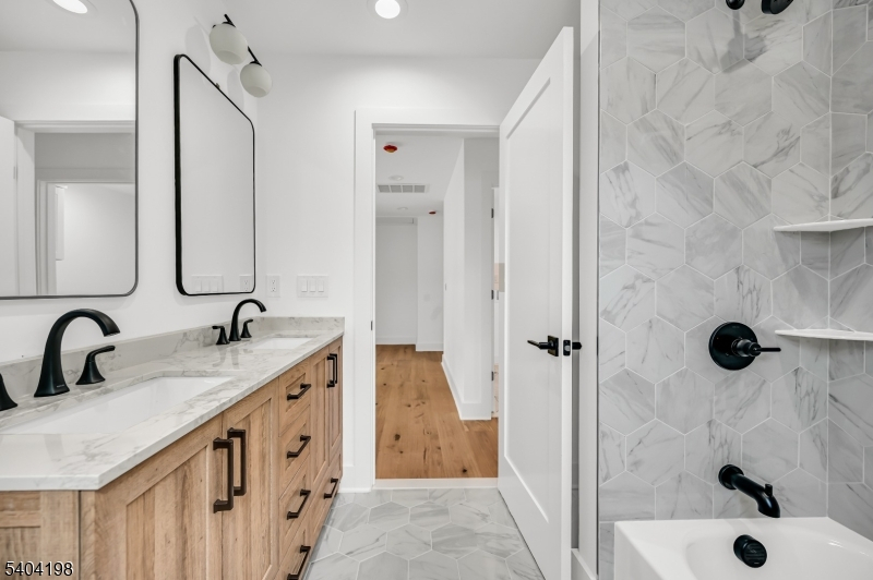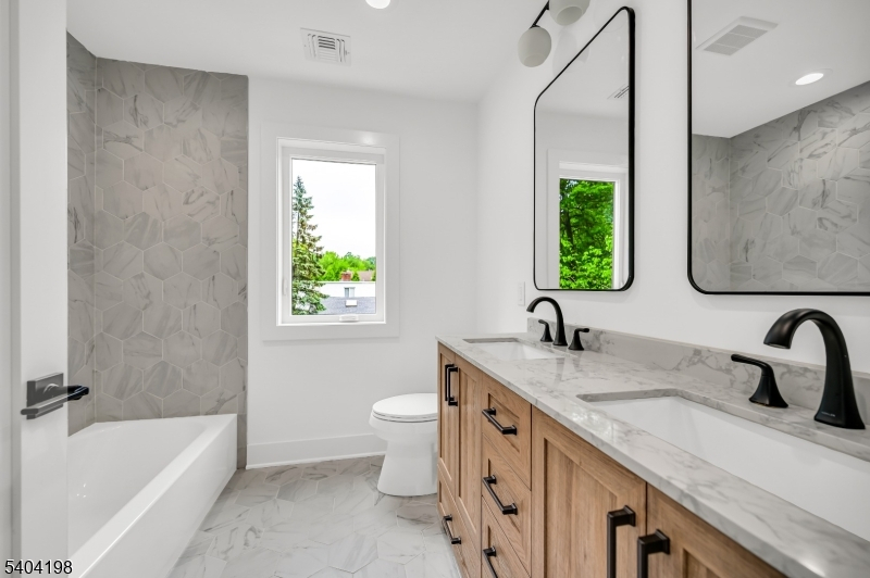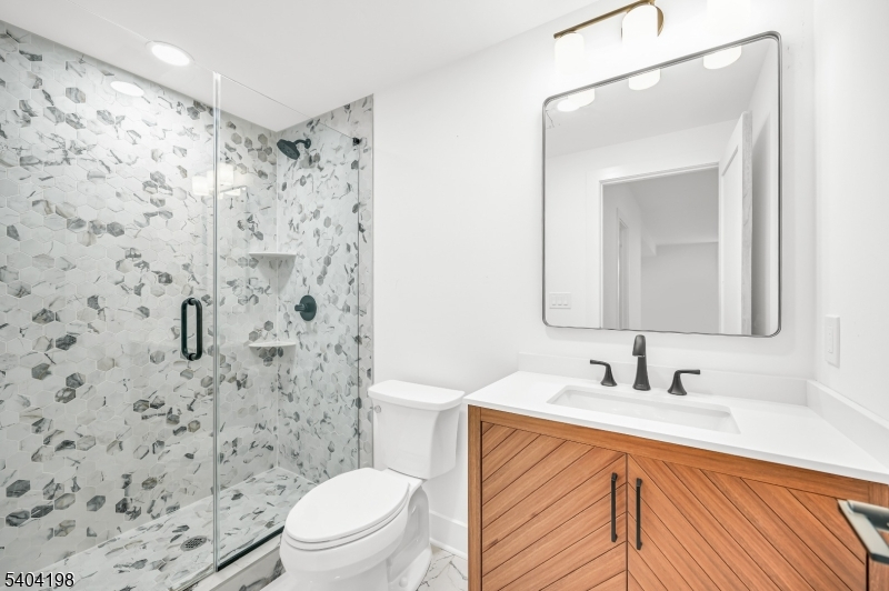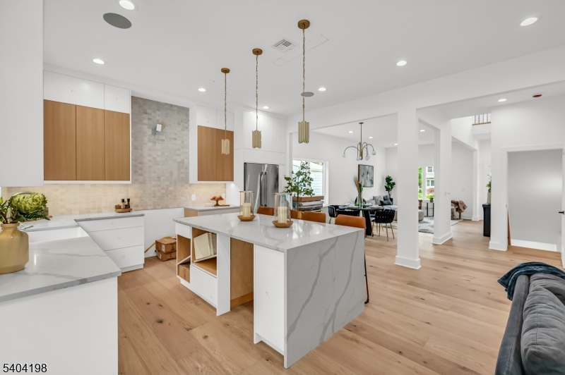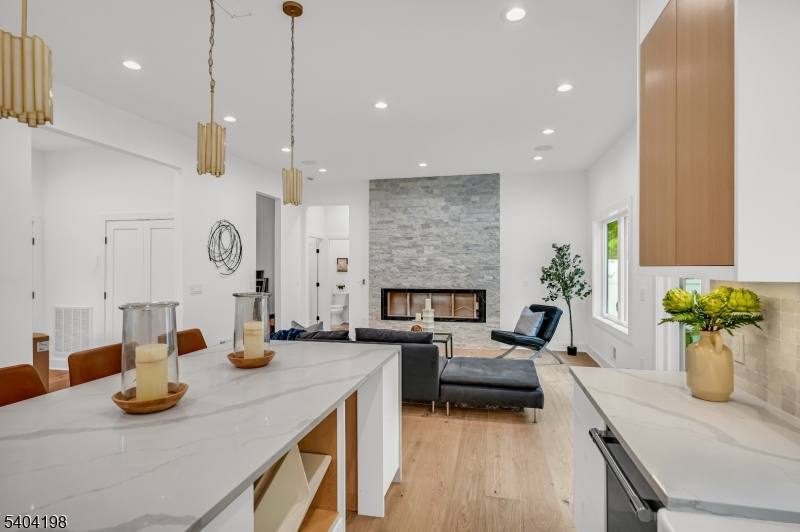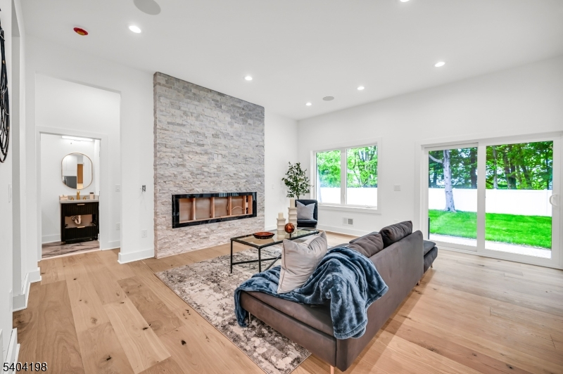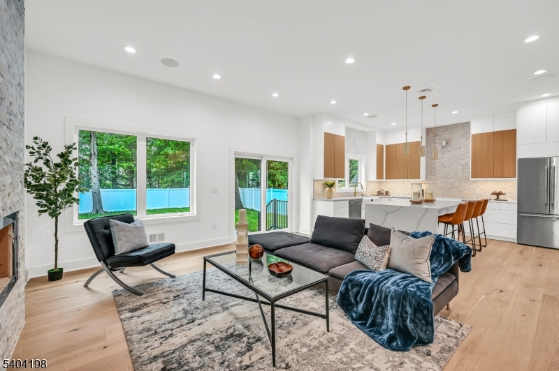 Welcome to this stunning NEW CONSTRUCTION Colonial home, located in a desirable Livingston neighborhood and the Mt Pleasant Elementary School district, within walking distance to the library, high school, and town center. Set on a leveled lot with a fenced backyard, this impressive 6-bedroom, 5-bath residence offers luxury living across three beautifully designed levels. A grand double-height foyer introduces the main level, featuring a formal living room, elegant dining room, guest bedroom, full bathroom, and mud room. The inviting open-concept layout showcases designer finishes throughout. The gourmet eat-in kitchen features custom cabinetry, a spacious center island, high-end appliances, quartz countertops, and a walk-in pantry. The family room flows from the kitchen and includes an elegant fireplace and sliding doors leading to the expansive flat backyard, ideal for entertaining. Upstairs are four generously sized bedrooms, including a luxurious primary suite with his-and-her walk-in closets and a spa-inspired bath with soaking tub, stall shower, and dual sinks. One bedroom is en-suite while two share a full bath. A convenient laundry room and BALCONY complete this level. The finished basement provides additional living space with an additional bedroom, large recreation room, and full bathroom. Modern smart home features and a 10-year builder's warranty ensure peace of mind.