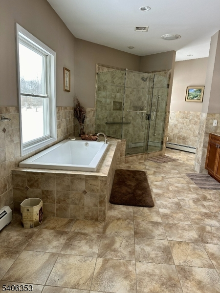Center Island, Eat-In Kitchen, Master BR on First Floor, Stall Shower and Tub