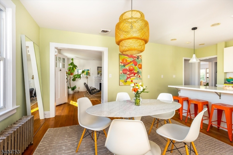 Sitting pretty on a prime Glen Ridge street, this inviting Center Hall Colonial is truly move-in ready. The first-floor layout is open and airy, with the living room flowing into a spacious family room offering direct access to the deck and backyard. The updated kitchen features upgraded stone countertops and stainless steel appliances, with a breakfast bar that provides seating and opens to the dining area. A full bathroom and convenient mudroom complete the first floor. The second level offers a rare four-bedrooms-on-one-floor layout, along with a full bathroom. Hardwood floors run throughout the home, while central air conditioning ensures comfort in every season. The finished portion of the basement provides valuable additional living or recreational space, along with abundant storage and a dedicated laundry room. The backyard is not to be missed. The deck areas lead to a deep, tiered yard that feels like your own private park. Lovely gardens and a charming storage shed are the perfect finishing touches. Enjoy easy access to the downtowns of both Montclair and Bloomfield, plentiful NYC commute options via train or bus, and close proximity to top-ranked Glen Ridge public schools.
