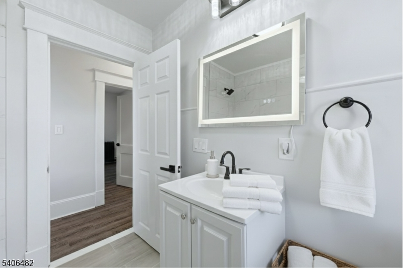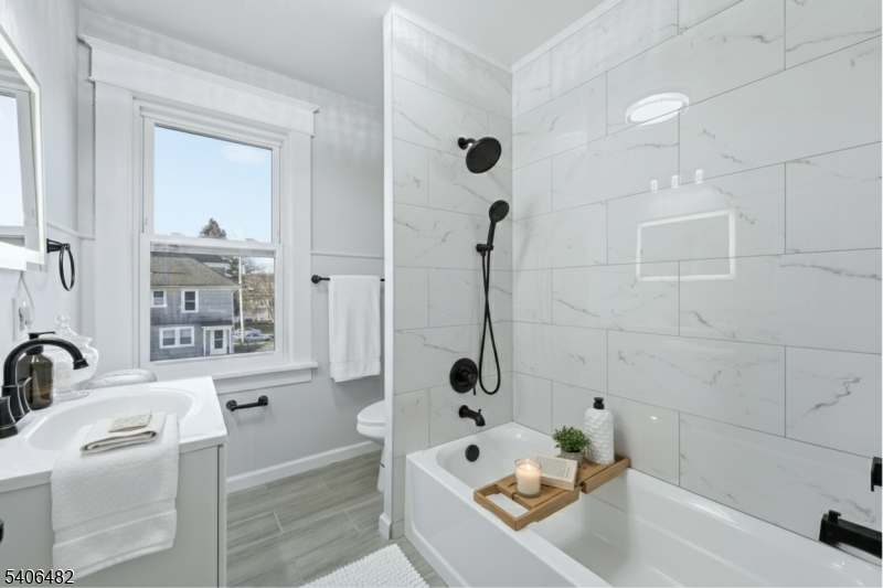 Welcome Home! This tastefully updated residence features three bedrooms, one full bathroom, and a versatile full basement. Upon entry, you're greeted by a sun-drenched enclosed porch, ideal for a cozy sitting area or relaxation space. Continue inside to a beautifully renovated main level where the living room, dining area, and kitchen flow effortlessly together. At the center of the home is a stunning modern kitchen showcasing brand-new stainless steel appliances, sleek finishes, and contemporary design. The second floor offers three comfortable bedrooms and a thoughtfully updated full bathroom. The full basement expands your living options with two finished bonus rooms perfect for a home gym, office, or additional storage, along with a laundry area complete with washer and dryer and a separate utility area. Outside, enjoy a charming, low-maintenance yard perfect for entertaining or unwinding. Additional highlights include a private driveway with ample space for multiple vehicles. Conveniently located near NYC transportation, this home offers an easy commute to the city. Schools are just around the corner, with shopping, dining, and local conveniences all within close reach. Low taxes!