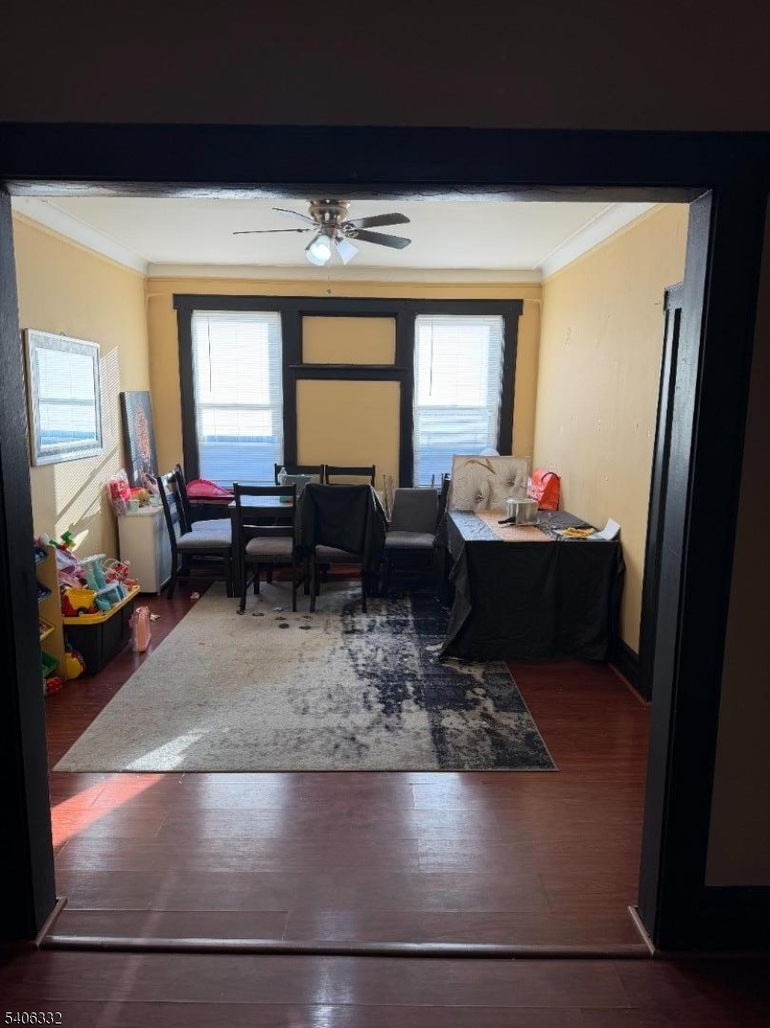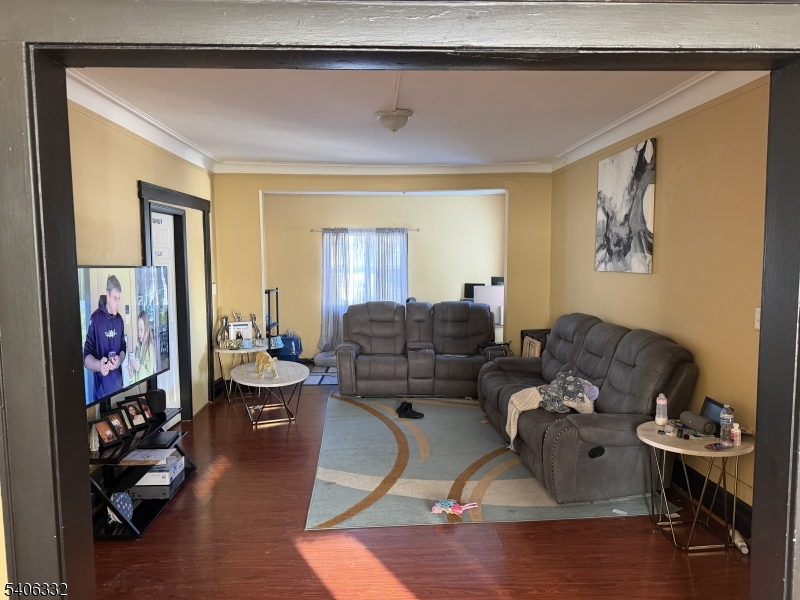 Spacious two-unit Multi-family home conveniently located near the 107X bus to NYC, offering easy access for commuters. The first-floor unit features a welcoming living room that flows into the dining room, providing a comfortable setting for everyday meals or hosting guests. The eat-in kitchen offers custom cabinetry, ample counter space, and stainless steel appliances. The primary bedroom includes a large closet, with two additional bedrooms and a full bathroom completing the level. The second-floor unit has its own private entrance leading directly into the kitchen, which features custom cabinetry, ample counter space, stainless steel appliances, and a pantry. The kitchen opens to a dining room suitable for daily use, while the living room provides a relaxed space to unwind. This unit includes a primary bedroom with a generous closet, two additional bedrooms, and a full bathroom. The partially finished basement adds usable space with a recreation room, home office, full bathroom, laundry area, utilities, and storage. Outside, the fully fenced backyard offers room for outdoor enjoyment. A one-car detached garage and driveway parking provide added convenience. Located close to transportation, shopping, and major roadways, this property offers flexibility for rental income, owner-occupancy, or a variety of living arrangements.