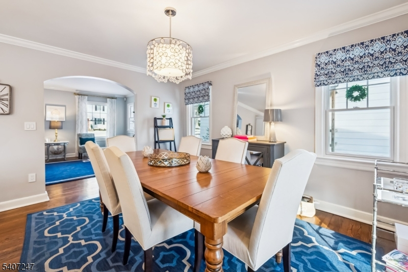 Situated on a generous, level lot in one of Chatham Boro's premier neighborhoods, this move-in-ready Colonial offers the perfect blend of comfort, functionality, and location. Featuring three finished levels, four bedrooms, two full baths and one half bath, the home is thoughtfully designed for today's lifestyle. The first floor welcomes a spacious living room, updated kitchen, dining room, dedicated office, mud/laundry room, and picturesque family room surrounded by windows overlooking the backyard. The kitchen is highlighted by wood cabinetry, marble countertops and backsplash, stainless steel appliances, wine refrigerator, pantry, and peninsula breakfast bar, seamlessly opening to the dining room for effortless entertaining. Hardwood floors, crown moldings, recessed lighting complete the main level. All four bedrooms are conveniently located on the second floor, including an ensuite bedroom and a shared hall bath. The finished lower level offers a recreation room with built-ins, workshop, utility area, and bonus storage space. Additional features include an attached garage with interior entry and automatic opener, expanded driveway, and a fully fenced backyard with deck ideal for outdoor enjoyment. Located within walking distance to the train, top-rated schools, shopping, and recreation.Recent updates include a new HVAC system (2025), renovated powder room (2022), owned water softener, and security system. Fireplace "as-is" for decorative use only. Washer and dryer "as-is"