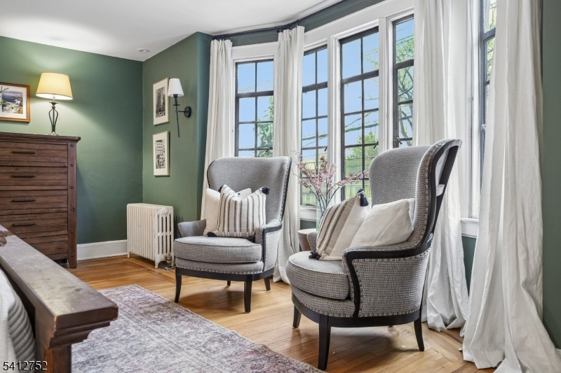 This beautifully updated five-bedroom, three-bath home blends timeless architectural charm with modern updates. A welcoming foyer sets the tone for the home's character and generous proportions. Rich natural hardwood floors, several original leaded-glass windows restored to perfection, and a striking wood-burning fireplace framed in slate and stone create a warm, comfortable atmosphere. The spacious living room is filled with natural light, while French doors open to a stylish Family Room. Designed for both everyday living and entertaining, this home features a formal dining room and a thoughtfully renovated kitchen appointed with quartz countertops, custom cabinetry, stainless steel appliances, and a separate breakfast nook. The newly updated primary bath features fresh, contemporary finishes. Plus a new central air system and new windows throughout the home, ensure modern comfort. The property includes a two-car garage. An exceptional residence for those who appreciate timeless design and the comforts of contemporary lifestyle. Welcome home!
