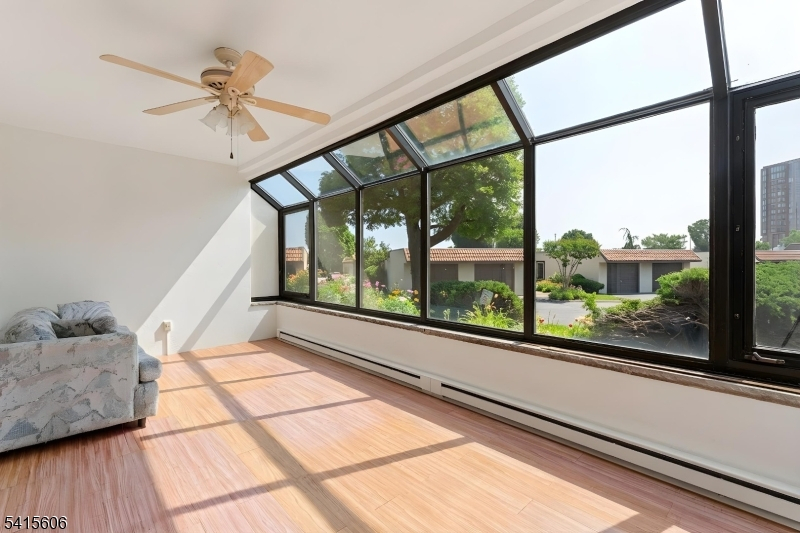 Welcome to the elegant "CLIFF HOUSE" overlooking the Hudson River Palisades. Mediterranean duplex townhouse community with sweeping NYC views conveniently located close to shopping along Anderson Avenue and Edgewater shopping centers. NJ Transit Bus Stop to NYC directly in front of building entrance. This 2 level, 2 bed/2 full bath townhome features 1849 sq ft w/attached full size 2 Car Garage. Terrace on main floor, enclosed patio on lower floor. Main Floor: 2nd Bedroom, Jack & Jill Bath, Kitchen w/ sky light and cut out breakfast bar, large LR/DR w/WB fireplace (as is) and large balcony with NYC View.Lower Level: Garage, Primary Bedroom with ensuite, 2 large closets,sliders to glass enclosed heated sunroom, Laundry/utility room, multiple hallway closets plus under stairway storage.