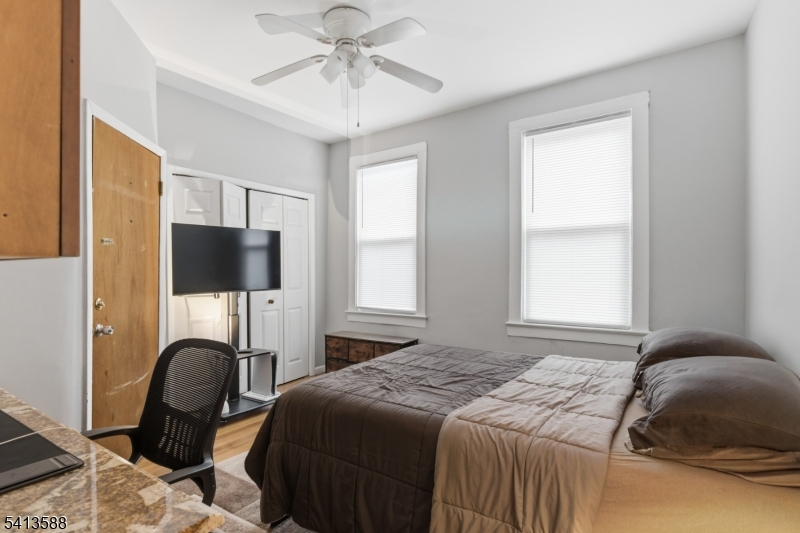 Well-kept three-family home offering approximately 3,400 sq ft of living space on a deep 43.91 126 lot. Interiors are bright and updated, featuring hardwood and parquet floors, modern ceiling fans, and generous natural light. Units include inviting living areas with bay-window seating, fireplaces, and clean, neutral finishes. Kitchens and baths are well-maintained, with a mix of white and dark cabinetry, tile backsplashes, updated vanities, and both tub and walk-in shower options. A partially finished basement adds flexible storage space. Strong curb appeal with gray siding, dormer windows, and manicured landscaping in a desirable Bayonne neighborhood.