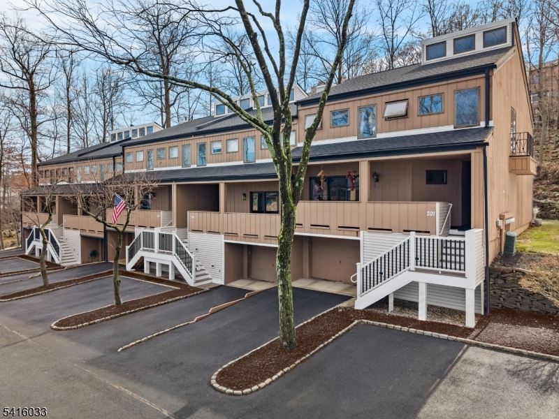 This distinctive corner unit offers approximately 3 bedrooms and 2.5 baths, along with one of the largest private outdoor spaces in the community. The fenced patio features a gazebo, seating areas, and mature plantings ideal for entertaining or unwinding in privacy. Enjoy a front balcony and decorative Juliet balcony, with NYC skyline views on clear days.Inside, a gallery-style entry leads to a formal living room and open kitchen/dining area with a convenient main-level half bath. Upstairs includes a primary suite with en-suite bath, a flexible family room or additional bedroom, and an open loft for storage or creative use. The lower level adds two rooms suited for office, flex, or storage needs.Located in a safe, quiet, and highly desirable neighborhood, close to parks, dining, Willowbrook Mall, and major routes including I-80, Routes 46 & 3, this home delivers privacy, flexibility, and standout outdoor space rarely found in the area.