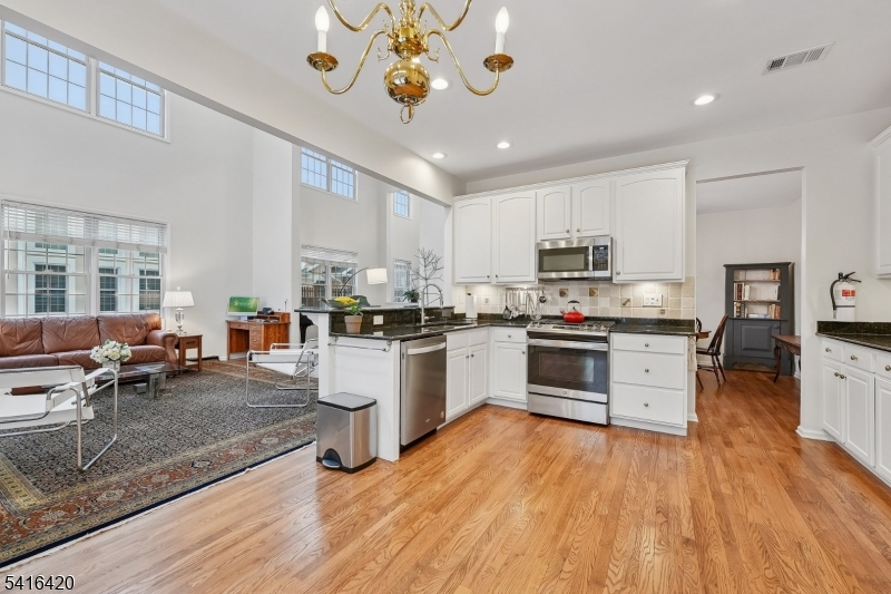 Sun-filled spaces, elegant updates, and effortless 55+ living await in this beautifully upgraded end-unit Merlot model in the highly sought-after Four Seasons community. Perfectly positioned to capture morning light in the kitchen and relaxing sunset views from the primary suite, this meticulously maintained townhome offers the perfect blend of comfort, style, and low-maintenance living. A dramatic two-story foyer opens to a spacious living and dining area with vaulted ceilings, a gas fireplace, and sliders to a private deck. The updated kitchen features granite countertops, refinished cabinetry with pull-out systems, a deep sink, newer stove and microwave, and a generous eating area. Refinished hardwood floors extend throughout the main level and second level. The primary suite includes a walk-in closet, seating area and updated spa-like bath with granite counters, new sinks/faucets, and rebuilt glass shower. Upstairs offers a versatile loft/office space, second bedroom, and full updated bath. The finished walk-out basement with new flooring provides additional living space and storage. Additional highlights include new HVAC (2025), Nest thermostats, newer roof (2024), updated lighting throughout, ADT security system, and a two-car garage with new flooring and storage systems. Residents of Four Seasons enjoy resort-style amenities, including a clubhouse with billiards, a tranquil pond, and a beautiful in-ground pool, all within a vibrant and welcoming community.