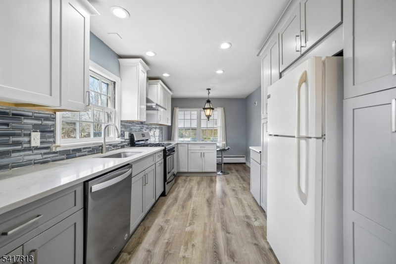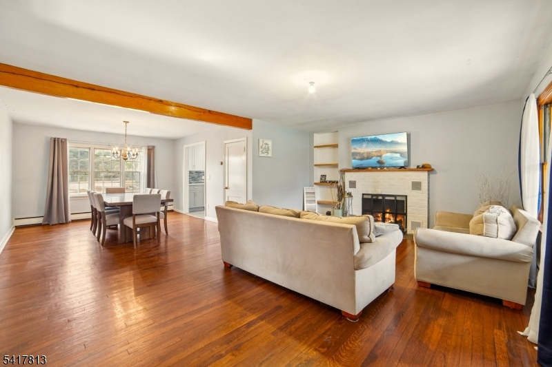 Nestled in the highly desirable town of Readington Twp and just 49 miles west of NYC, this charming home offers 2.21 gorgeous, level acres with scenic views overlooking Round Valley Mountain. Surrounded by natural beauty, the property provides a peaceful setting while remaining conveniently close to everyday amenities and recreation. The home features hardwood flooring throughout the first floor, adding warmth and character. A remodeled eat-in kitchen showcases stainless steel appliances, ample cabinetry, and space for casual dining. The formal dining room is perfect for hosting gatherings, while the inviting living room boasts a stunning wood beam ceiling and a cozy wood-burning fireplace, creating the perfect ambiance. Two bedrooms and a beautifully remodeled full bathroom are located on the first floor, offering comfort and convenience. Upstairs, an additional flexible space can serve as an optional bedroom, office, or creative retreat. A bright sunroom provides the perfect spot to relax and enjoy the surrounding views year-round. Generous closet space throughout adds to the home's functionality. Outdoor living shines with a covered front porch, spacious deck, and an above-ground pool, all set within a fantastic backyard designed for entertaining, gardening, or simply enjoying the serene landscape. Located near Round Valley Reservoir for hiking, biking, fishing, and boating, as well as Stanton Ridge Golf & Country Club, NYC train station, shopping, dining, and highways.