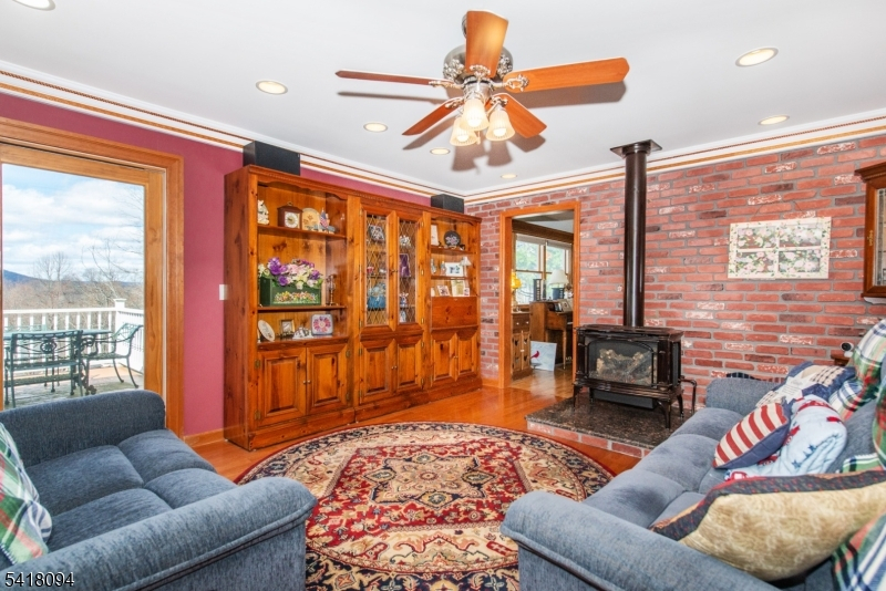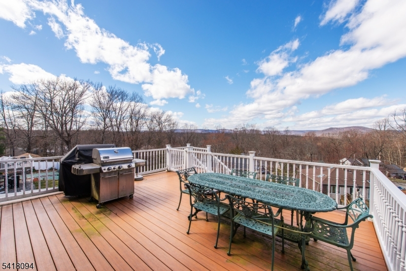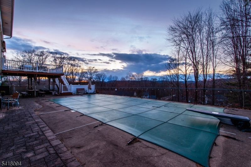 Refined and impeccably updated 4BR, 3.5BA center hall Colonial in sought-after McAtee Estates, offering breathtaking, unobstructed Ramapo Mountain views. Sunlit interiors showcase hardwood floors throughout and radiant heat across the living, dining, and foyer, creating warmth and comfort in every season. The inviting family room is centered around an electric-start gas stove fireplace. A beautifully designed kitchen features a Viking range, double oven, built-in microwave, custom pantry pull-outs, and a movable island for flexible everyday living and entertaining. The serene primary suite offers a walk-in closet and a renovated Jacuzzi shower. The main bath is appointed with durable Brazilian Ipe flooring. Recent upgrades include a newer roof, HVAC, and hot water heater. A whole-house generator ensures uninterrupted living, powering the home and heated in-ground saltwater pool, complete with robotic vacuum. Formal living and dining rooms are enhanced by removable stained glass accents. The full walkout basement with high ceilings and full bath offers exceptional potential for future living space. Additional highlights include a 2-car garage, municipal water and sewer, and natural gas. Ideally located near shopping, dining, and major commuting routes; Wanaque offers full-day kindergarten. A rare opportunity'don't miss this move-in ready home.