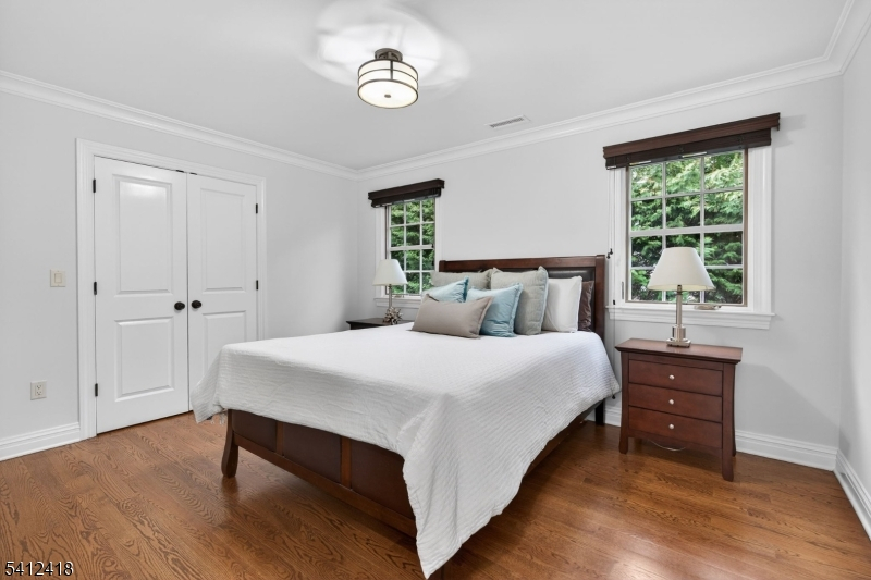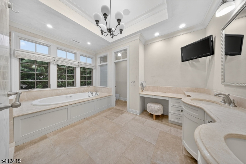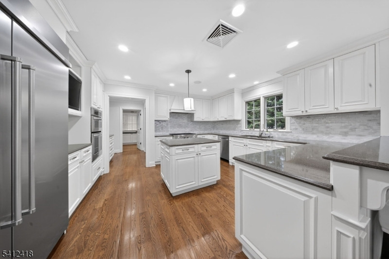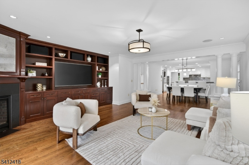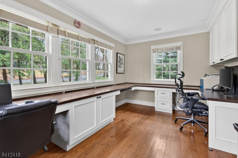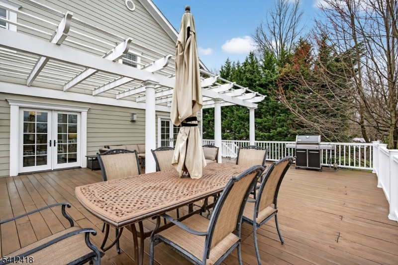 Timeless elegance meets modern sophistication in this stunning custom Colonial built in 2009, ideally located in the desirable Poets Section of Short Hills. Thoughtfully designed across 3 spacious levels, this home blends luxurious finishes with everyday functionality. Enter through the grand foyer with hardwood floors and crown molding to the living and dining rooms showcasing herringbone flooring, custom millwork and built-in audio. The chef's eat-in kitchen features custom cabinetry, quartz countertops, premium stainless steel appliances and a center island, flowing seamlessly into the breakfast area and inviting family room with built-ins, gas fireplace and surround sound. Step outside to a maintenance-free deck with pergola, outdoor speakers, lighting and natural gas grill ideal for indoor-outdoor living. A private office with custom workstations and powder room complete main level. Upstairs, the primary suite offers a vaulted ceiling, dual walk-in closets + a spa-like bath with soaking tub, multi-head shower and luxurious finishes. 3 additional bedrooms including a junior suite + a hall bath and convenient laundry room. The lower level provides a recreation room, exercise space, full bath, mudroom + access to oversized 2-car garage. Smart home features in most of home include audio, security system, generator, multi-zone HVAC and integrated controls. Close to top-rated schools, parks, shopping + NYC transit, this home offers the perfect blend of comfort and convenience.