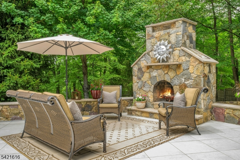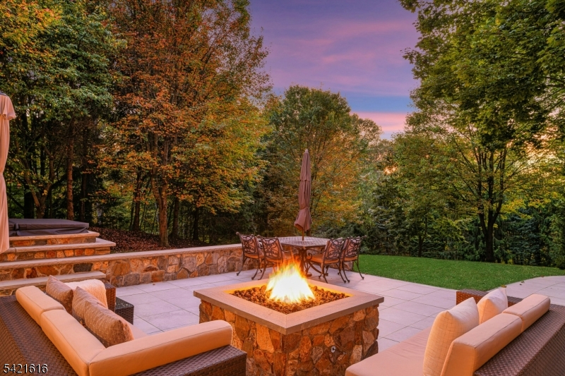 Nestled on 2.24 private acres in prestigious Hawk Hill, this exceptional 4-bedroom, 7-bath custom-built, one-owner home offers a rare opportunity to own a residence that blends luxury, privacy, and thoughtful design. Surrounded by mature landscaping, it provides a true retreat setting with spectacular living spaces inside and out. A gracious foyer introduces refined interiors with custom millwork and three fireplaces. The main level features a formal dining room, elegant music room, and a wet bar ideally positioned for entertaining. The gourmet kitchen offers two islands, a sunny breakfast area with gas fireplace, and opens seamlessly to a spacious family room with a striking stone fireplace.The primary suite includes a sitting area, private office, walk-in closet, and spa-like bath. Three additional bedrooms include one ensuite and two sharing a well appointed hall bath. A second-floor laundry room adds convenience.The walkout lower level features a family room with fireplace, gym, kitchenette, full bath, changing room for the outdoor jacuzzi, recreation space, powder room & ample storage.Ideal for in-law suite. Outdoor living includes a stone patio, hot tub, expansive lawn with room for a pool, and an upper patio with a wood-burning fireplace ideal for year round enjoyment..Located in desirable Boonton Township with top-rated schools, including acclaimed Mountain Lakes High School, this is a rare opportunity to own a meticulously maintained home in an exceptional setting.
