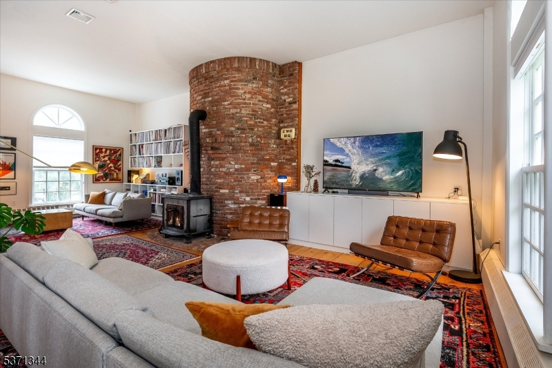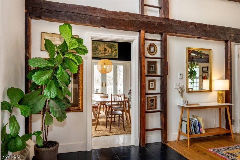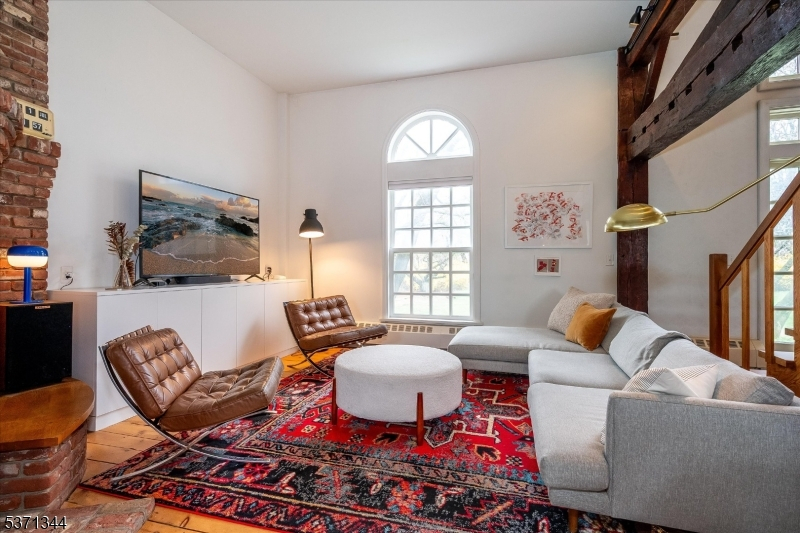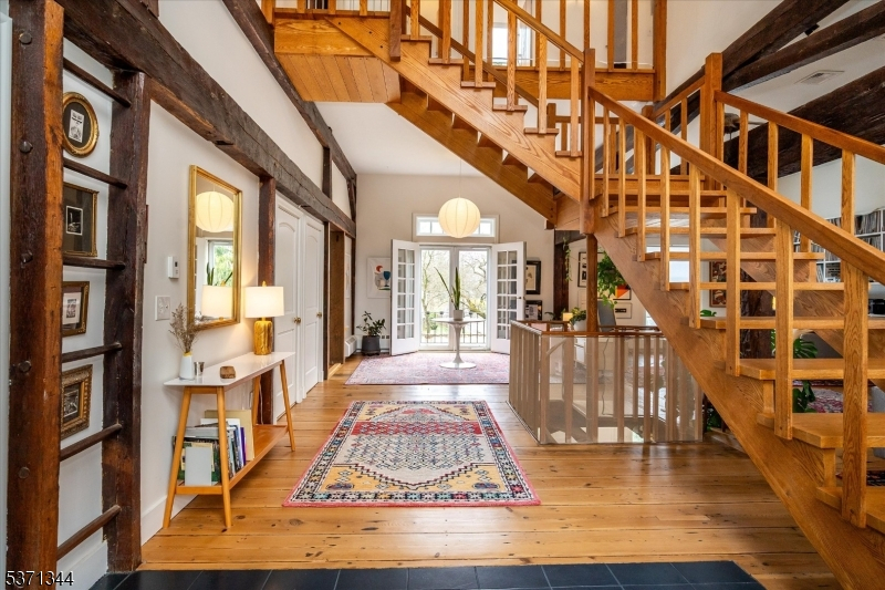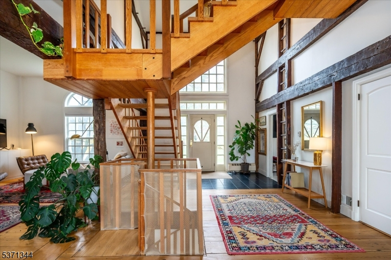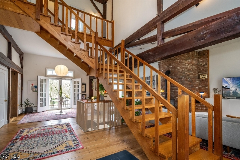 Step into a truly one-of-a-kind home an 1825 converted barn thoughtfully renovated to blend historic charm with modern style. Set on 2 private acres, this 3-bedroom, 2.5 bath residence offers three fully finished levels of living space filled with natural light from dramatic floor-to-ceiling windows. The open floor plan features soaring ceilings, wide plank floors, custom woodwork including architectural staircases and a stunning brick fireplace that anchors the main living area. The home's design is both stylish and functional, creating a cool, contemporary feel while preserving its unique character. Enjoy seamless indoor-outdoor living with multiple decks overlooking mature trees, a beautiful yard and a private walled courtyard perfect for relaxing or entertaining. A separate workshop adds flexibility for hobbies or creative space and the oversized 2-car garage also a converted structure, includes a large loft space above. Every detail reflects craftsmanship and charm, making this home truly special. A rare opportunity to own a modern, architecturally unique property with timeless appeal unlike anything else on the market!